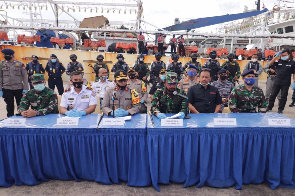 Sehingga kewenangan itu, sambung orang nomor satu di Polda Kepri, ada di Aparat Kepolisian termasuk juga di TNI AL dan Bakamla termasuk aparat Indonesia lainnya dapat melakukan tindakan hukum.