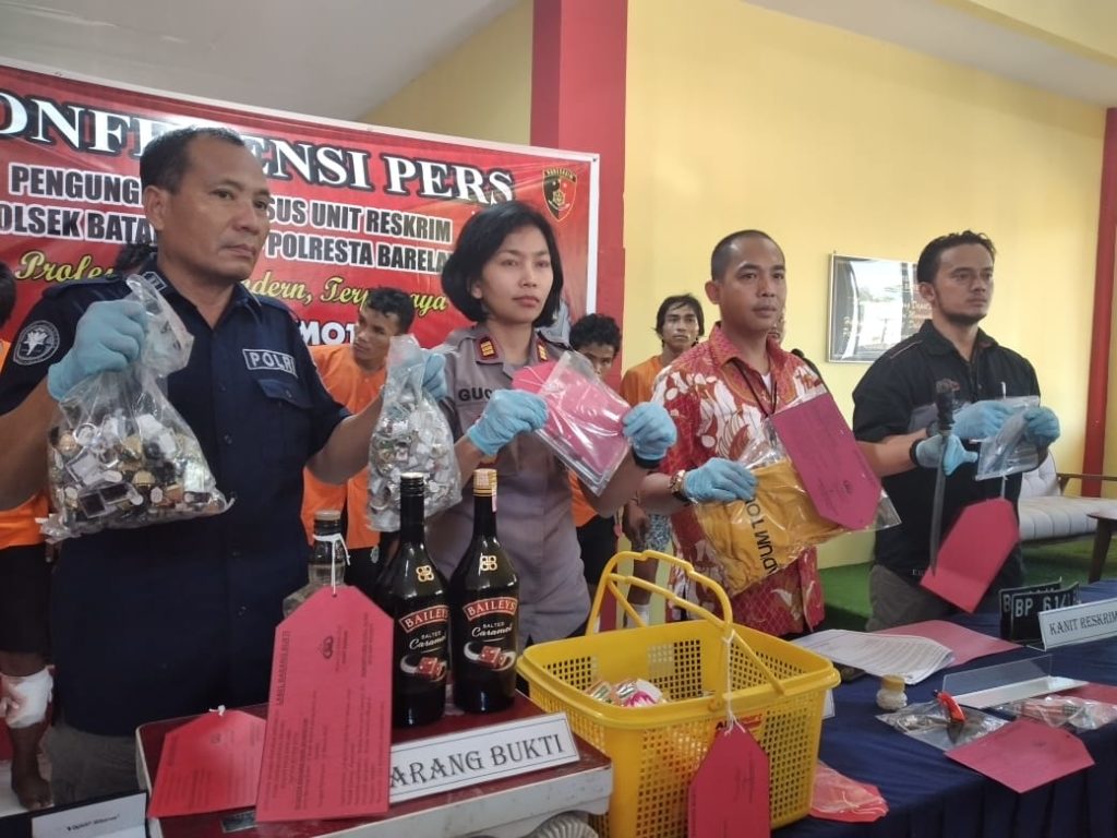 “Sekira pukul 05.00 WIB para pelaku lain pulang ke Ruli Malam Dam Duriangkang, Kecamatan Sei Beduk dengan membawa empat Unit kendaraan bermotor roda dua hasil curian serta barang-barang hasil curian lainnya sehingga saat itu juga langsung dilakukan penangkapan terhadap lima orang tersebut,” terang perwira melati satu dipundak yang pernah menjabat Kasat Reskrim Polres Bintan dan Polres Tanjungpinang ini.