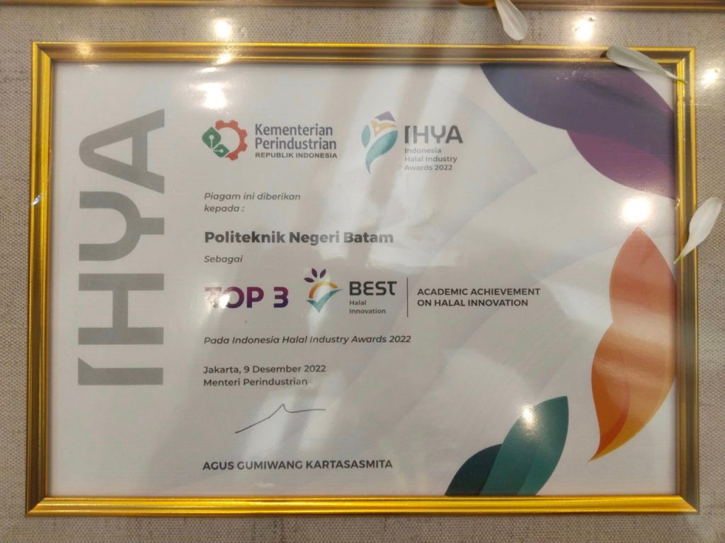 Politeknik Negeri Batam Raih Top 3 Best Indonesia Halal Industri Award (IHYA) 2022