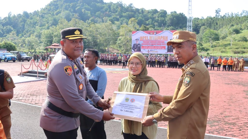 Dalam kesempatan tersebut, Polres Lingga bersama Pemerintah Kabupaten Lingga juga menyerahkan bantuan sosial kepada warga yang terdampak bencana beberapa waktu lalu. Penyerahan dilakukan secara simbolis oleh Kapolres Lingga didampingi Wakil Bupati Lingga.