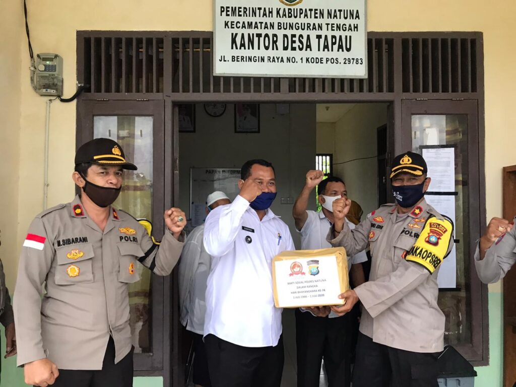 PROBATAM.CO, Natuna – Polres Natuna kembali mengadakan bakti sosial dalam rangka Hari Bhayangkara ke 74 tahun 2020 di Kantor Desa Tapau, Kecamatan Bunguran Tengah, Kabupaten Natuna, Rabu (24/6/2020) siang.