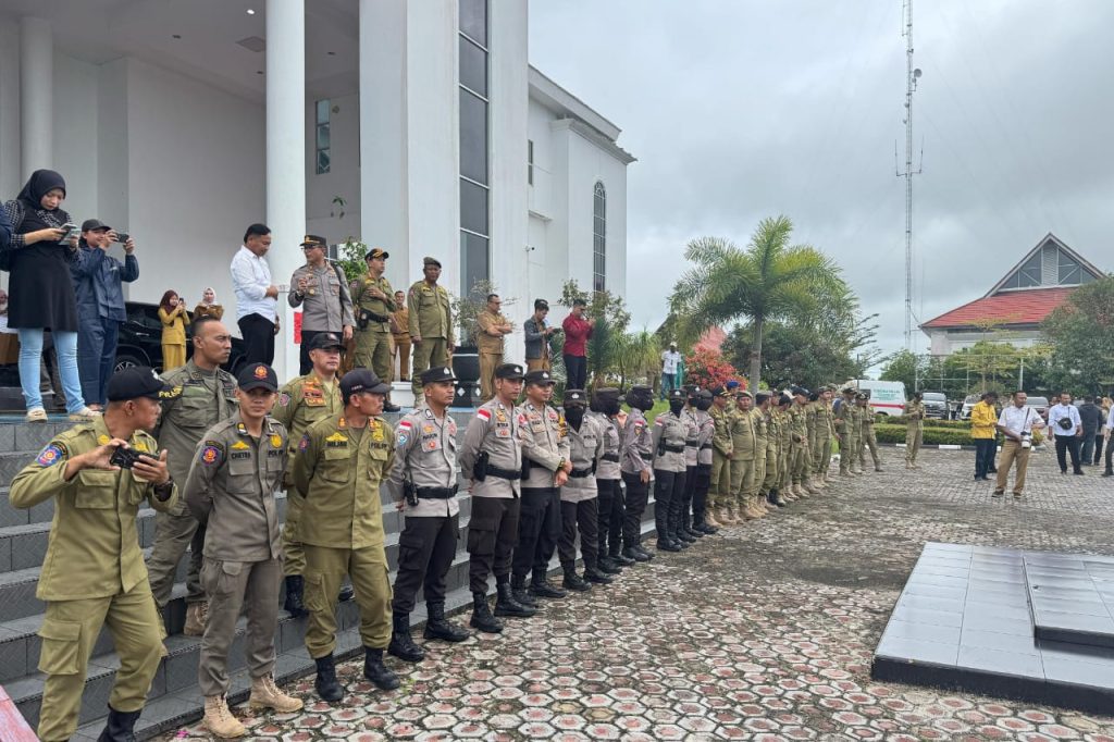 Unjuk rasa yang berlangsung di Halaman Kantor Bupati Natuna pada Senin (10/3/2025) siang ini dikawal ketat oleh 160 personel kepolisian guna menghindari potensi gangguan ketertiban.