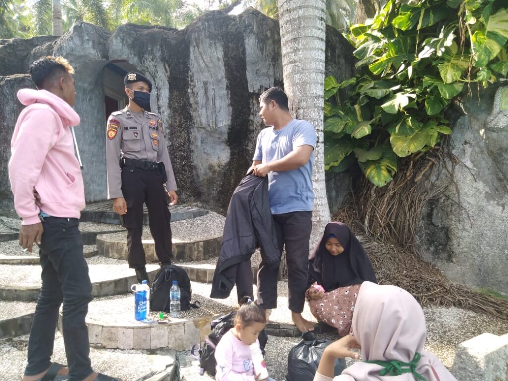 Perwira Pengamanan (PAM) Objek Wisata Polres Natuna IPDA Ronald Tampubolon bersama anggota melakulan pemantauan objek wisata yang ada di Natuna, Minggu (2/8/2020). (Photo:hms)