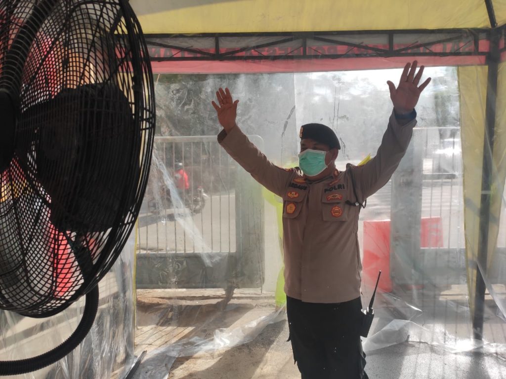 Polresta Barelang Berlakukan Setiap Orang Lewati Tenda Penyemprotan dan Cek Suhu Badan