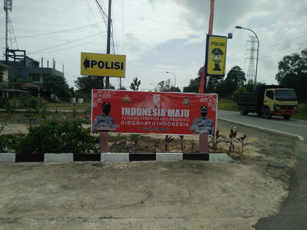 Polresta Barelang dan Polsek Jajaran Pasang Baleho dan Umbul-umbul Sambut HUT Kemerdekaan RI Ke 75