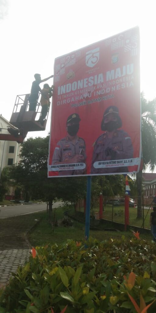 Beranda / Berita Utama / Polresta Barelang dan Polsek Jajaran Pasang Baleho dan Umbul-umbul Sambut HUT Kemerdekaan RI Ke 75