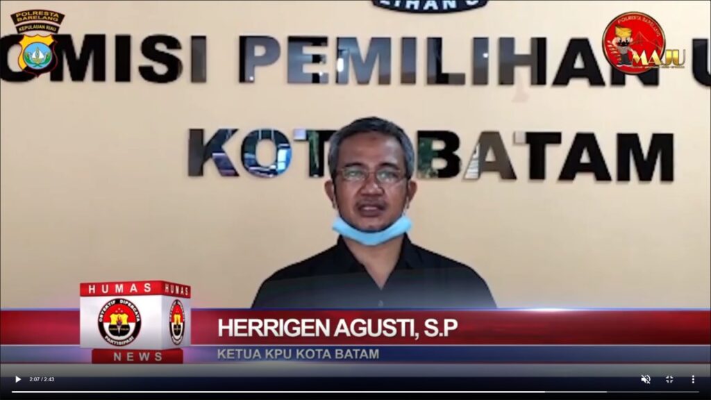 PROBATAM.CO, Batam –– Kapolresta Barelang Polda Kepri AKBP Yos Guntur SIK, MH bersama Ketua KPU Kota Batam Heriggen Agusti, S.P memberikan himbauan melalui Video Polresta Barelang menjamin keamanan Pilkada Serentak Tahun 2020 di Kota Batam .