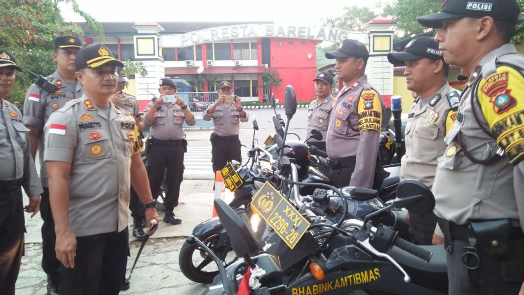 PROBATAM.CO, Batam – Polresta Barelang menggelar kesiapan personil maupun peralatan untuk pengamanan demo buruh di depan kantor Wali Kota Batam yang akan digelar besok, Rabu 2 Oktober 2019.