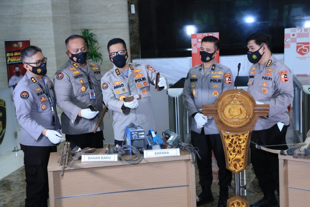 “Tersangka upik ini bulan Agustus 2020 sudah dipesan untuk membuat senjata api rakitan ini. Ada pesanan dari pimpinannya, mulai Agustus 2020 silakan membuat senjata. Masalah digunakan kapan belum tahu. Yang bersangkutan sudah menyiapkan, ada perintah untuk membuat senjata,” papar Jenderal bintang dua itu.