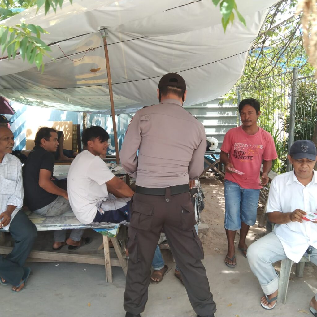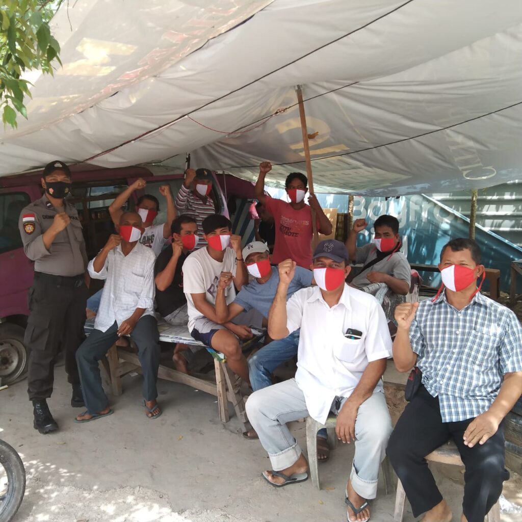 Personil Polsek Batam Kota yang membagikan masker personil Batara Biru Polsek Batam Kota Aipda Deni Laset, Bhabinkamtibmas kelurahan Baloi Permai Brigadir A. Rahim, Bhabinkamtibmas kelurahan Belian Brigadir Sef Yulianda.