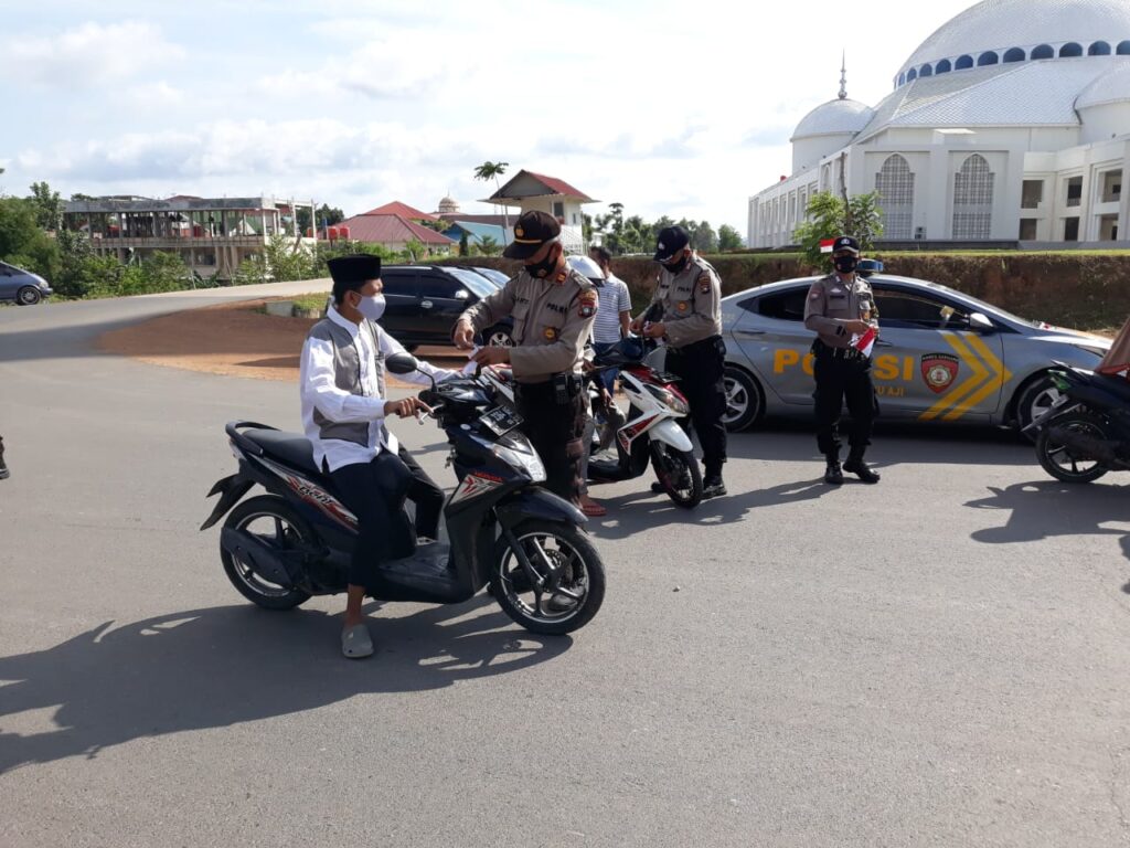 “Pembagian bendera merah putih di depan Polsek Batu Aji, Simpang traffic light Polsek Batu Aji, Depan Masjid Sultan Mahmud Riayat Syah