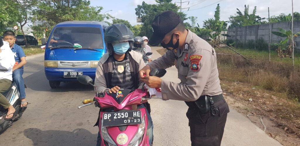 PROBATAM.CO, Batam- Dalam rangka HUT Kemerdekaan RI ke 75, Polsek Batu Aji melaksanakan pembagian bendera Merah Putih kepada masyarakat di wilayah Kecamatan Batu Aji, Kota Batam, Sabtu (8/8/2020).