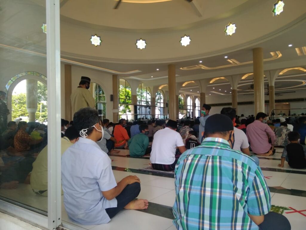” Iya tadi siang, di Masjid Baitul Makmur Kampung Seraya, Keamatan Batu Ampar, Kota Batam berlangsung kegiatan Pengamanan Sholat Jumat serta pembagian masker dan sekaligus himbauan protokol kesehatan oleh Polsek Batu Ampar guna mencegah penyebaran covid-19,” kata Kapolresta Barelang AKBP Yos Guntur YFS, S.IK, MH melalui Kapolsek Batu Ampar AKP Nendra Madya Tias, S.IK.
