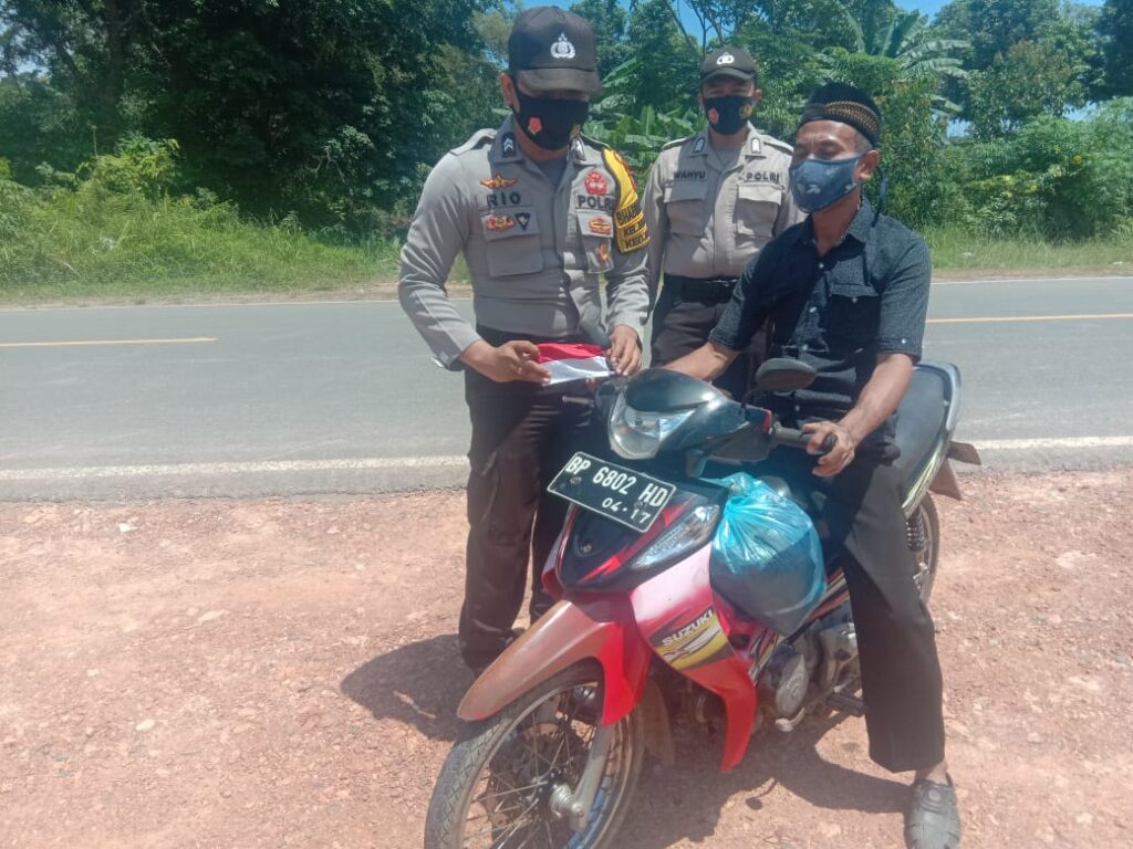 Ia mengatakan, bendera yang di bagikan oleh Polsek Galang berjumlah 20 buah dan sejumlah masker yang diperuntukkan bagi pengguna jalan raya yang melintas di kawasan tersebut.