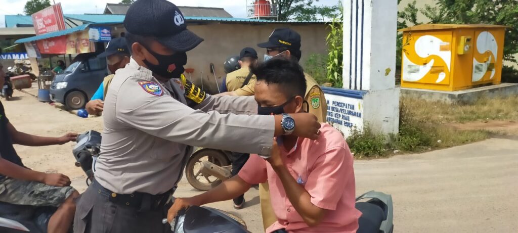 PROBATAM.CO, Batam – Personil Polsek Galang yang dipimpin langsung oleh Kapolsek Galang AKP Herman Kelly yang diwaliki Kanit Intelkam Polsek Galang, Selasa (10/11/2020) siang, melaksanakan pengamanan kegiatan Gerakan 5 Juta Masker mewujudkan Pilkada Sehat 2020 di wilayah kecamatan Galang, Kota Batam.