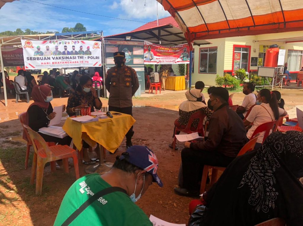 Kapolresta Barelang KBP Yos Guntur, SH, SIK, MH melalui Kapolsek Galang AKP Herman Kelly mengatakan Vaksinasi merupakan upaya percepatan vaksinasi bagi Masyarakat Galang.
