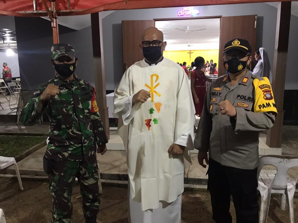 PROBATAM.CO, Batam- Personil Polsek Galang malam tadi juga melaksanakan pengamanan (PAM) kegiatan perayaan Natal tahun 2020 di Gereja Khatolik Santo Ignatius Layola, di kelurahan Sembulang, kecamatan Galang, Kota Batam, Kamis (24/12/2020) malam.