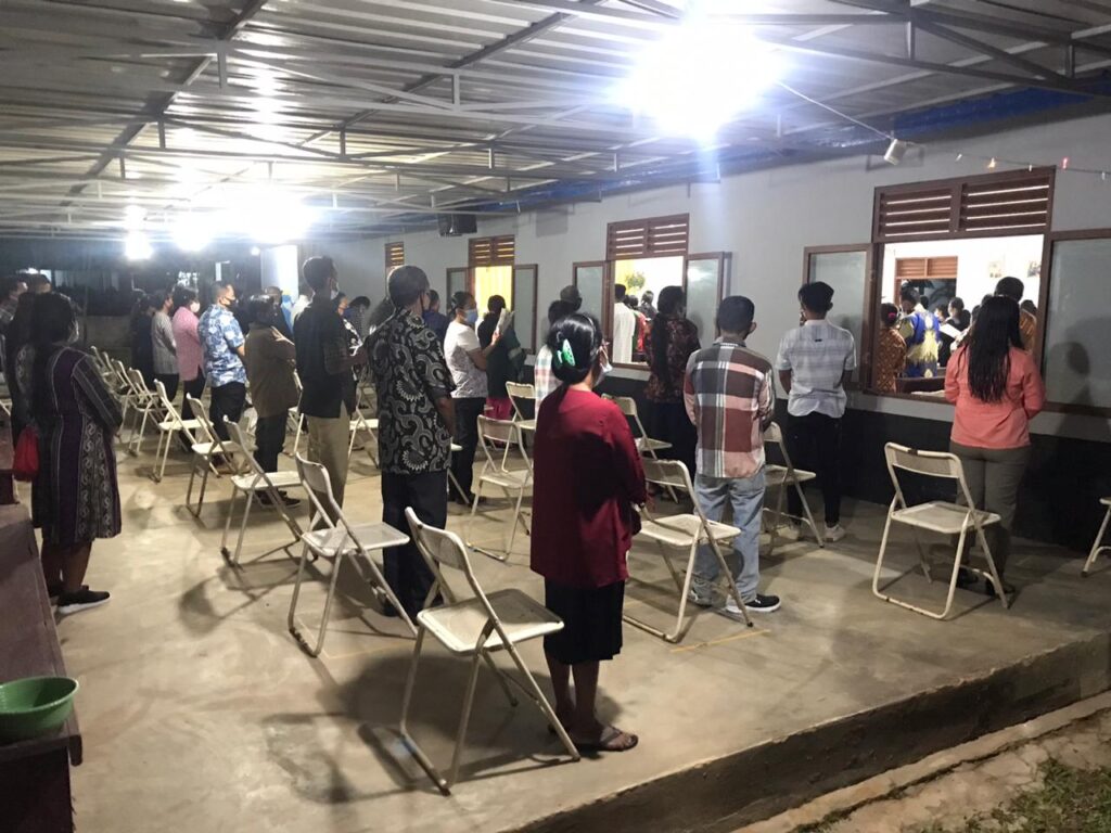 Gereja Khatolik Santo Ignatius Loyola telah melaksanakan protokol kesehatan adaptasi kebiasaan baru berupa :