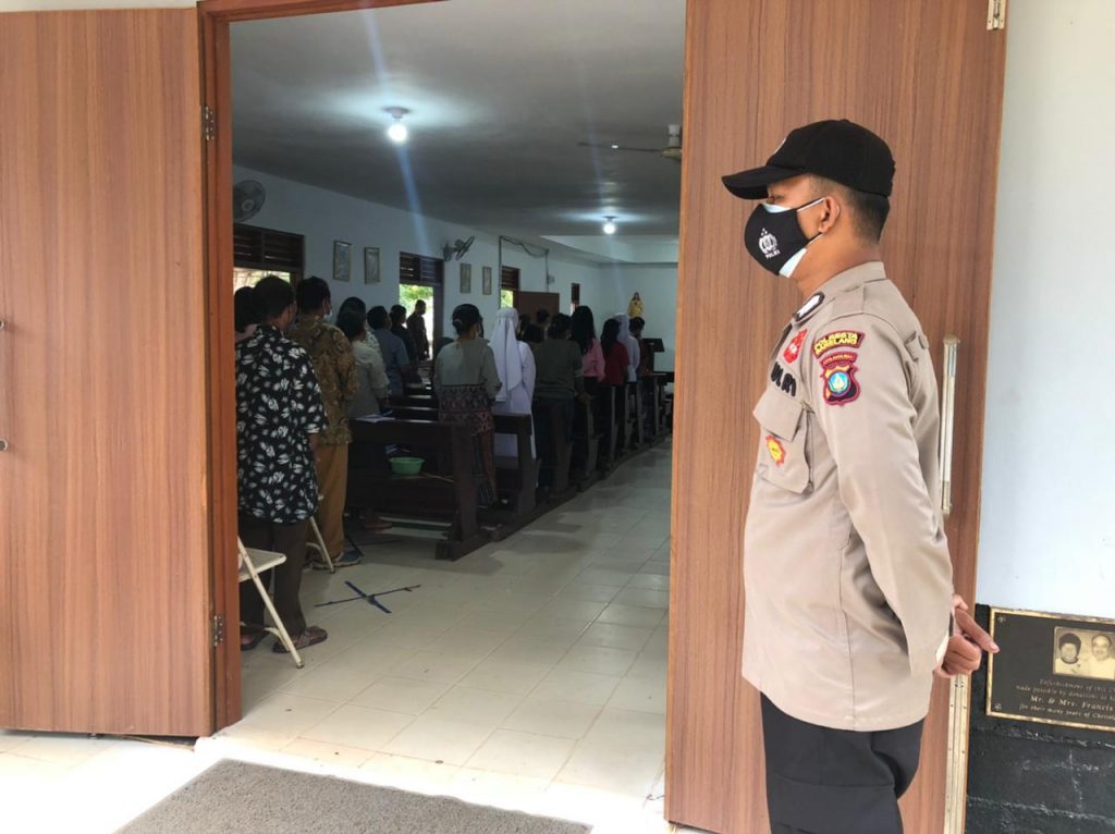 Beranda / Peristiwa / Polsek Galang Pam kegiatan Ibadah Mingguan di Gereja St Ignatius Loyola Sei Raya