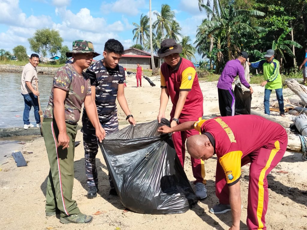 Polsek Gunung Kijang, TNI dan Warga Goro Bersihkan Sampah Serentak di Pantai Lohoa Kawal