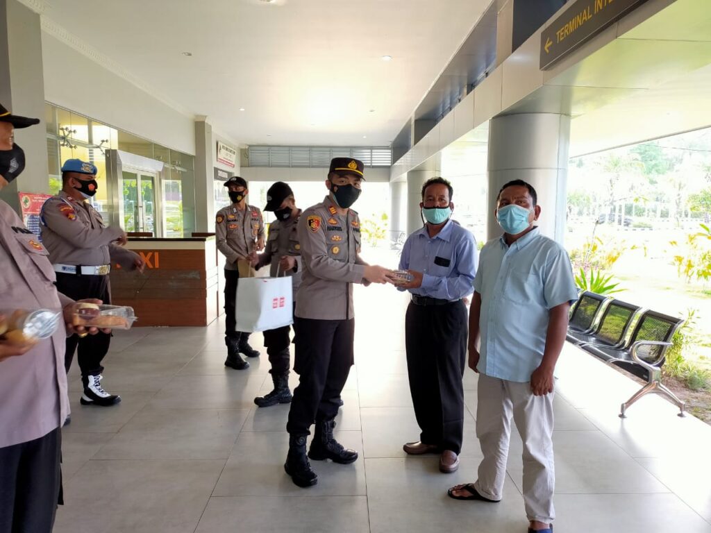 Pembagian menu berbuka puasa atau takjil, dipimpin langsung oleh Kapolsek Kawasan Pelabuhan Batam AKP Budi Hartono di Pelabuhan Domestik Sekupang, Batam, Selasa Sore sekira pukul 16.00 WIB.