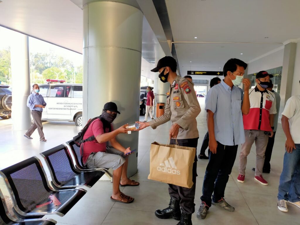 “Kami bagikan, takji khususnya kepada calon penumpang kapal dan masyarakat yang melintas,” ujar Hartono.
