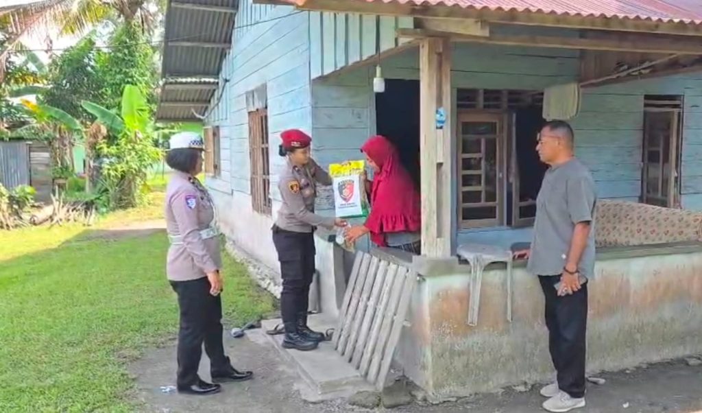 Polwan Humanis, Polwan Polres Lingga Dekat dengan Masyarakat Lewat Baksos Sembako