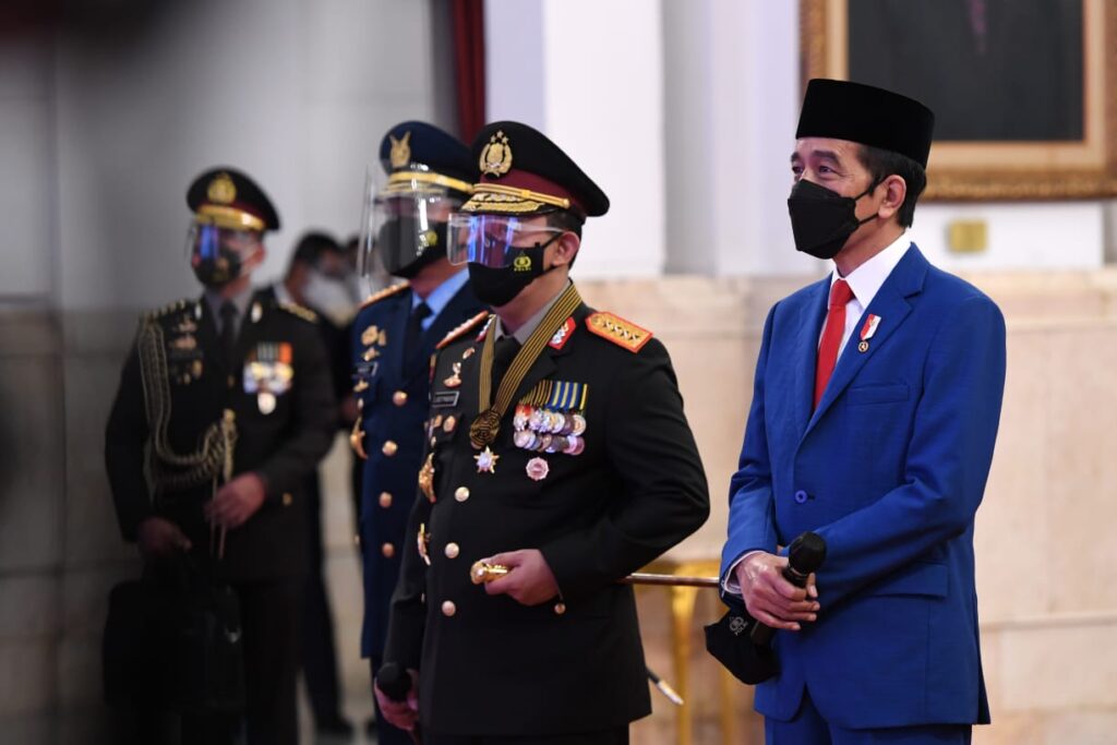 Hadir mendampingi Presiden dalam acara tersebut antara lain Wakil Presiden Ma’ruf Amin, Kapolri Jenderal Listyo Sigit Prabowo, dan Panglima TNI Marsekal Hadi Tjahjanto.