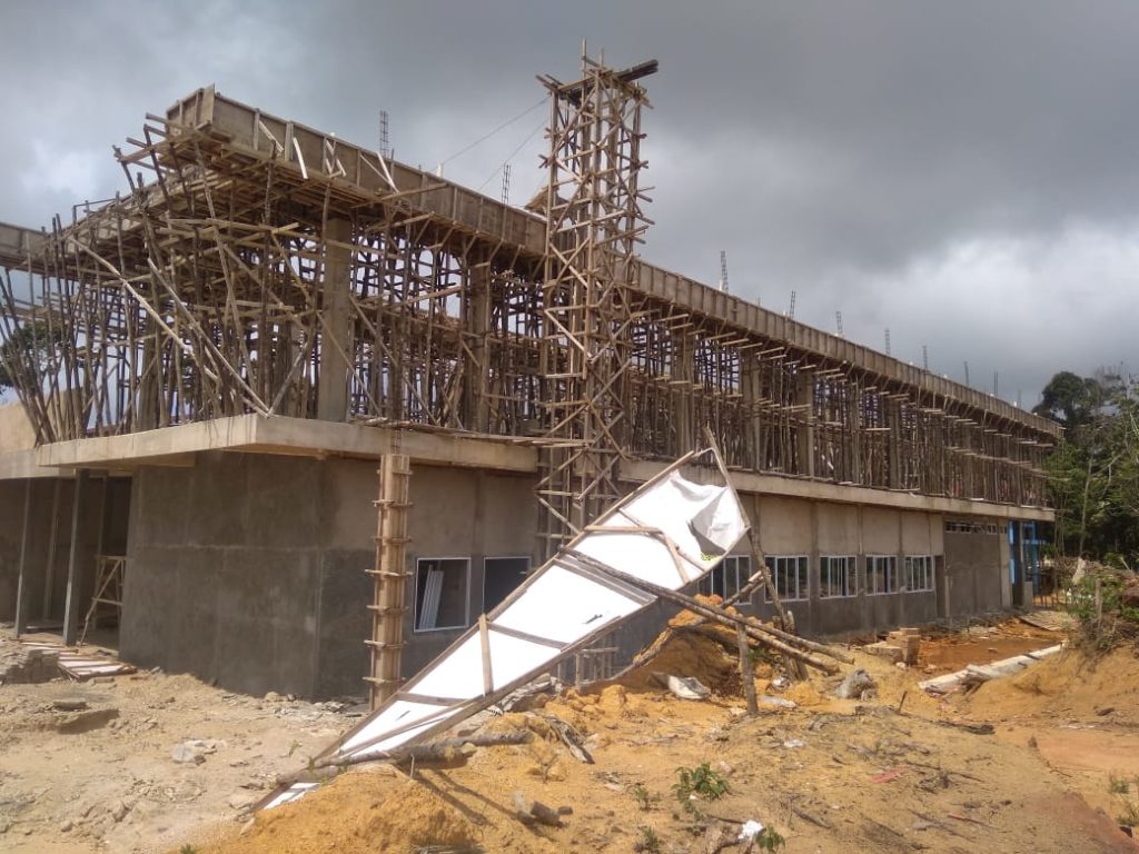 Pengamatan di lapangan, saat ini tak terlihat aktivitas di lokasi proyek. Bangunannya masih jauh dari kata selesai. Seperti lantai dua bangunannya yang tampak andang kayu masih melekat, dan keramik lantai belum terpasang sempurna.