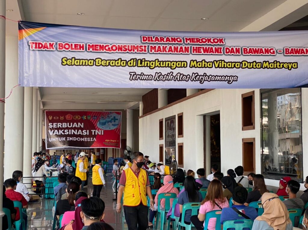 PROBATAM.CO, Batam – PSMTI dan Kodim 0316/Batam melaksanakan kegiatan vaksin Covid -19 pada hari ini, Sabtu (17/7/2021) pukul 08.00 WIB – selesai di Maha Vihara Duta Maitreya, Batam Center, Batam.