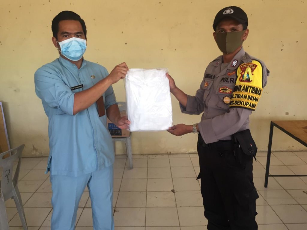 Lurah Tiban Indah Rizky Surya Lestari juga membagi-bagikan alat pelindung diri (APD) yang diperuntukkan kepada petugas Puskesmas Mentarau 10 set, Babinsa Tiban Indah dan Bhabinkamtibmas Tiban Indah masing-masing satu set.