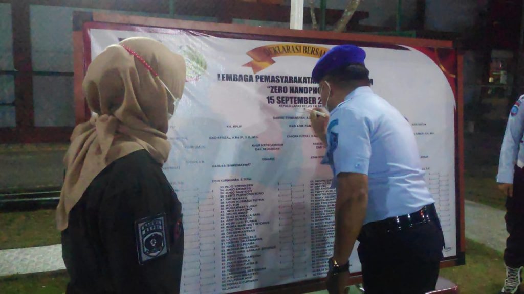 PROBATAM.CO, Batam-Menindaklanjuti arahan Direktur Jenderal Pemasyarakatan, Reynhard Silitonga yang disampaikan secara virtual pada hari Senin (13/09) lalu, Lembaga Pemasyarakatan Kelas IIA Batam merespon cepat dengan menggelar Apel Deklarasi Bersama Lapas Kelas IIA Batam Zero Handphone, Rabu (15/09/2021).