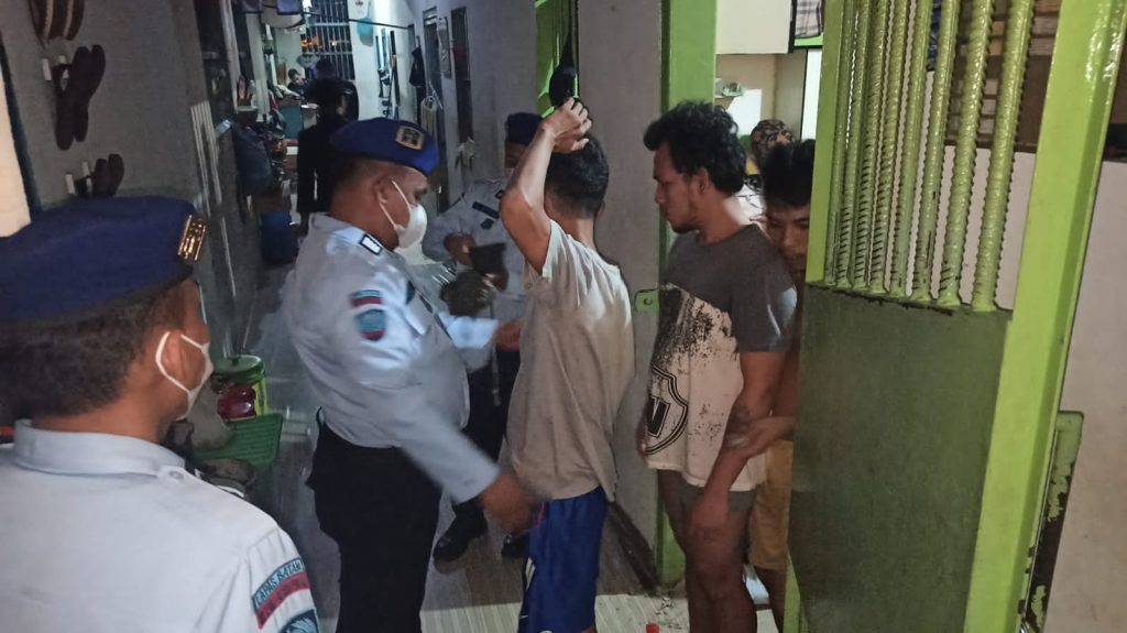 Sebanyak 80 orang petugas Lapas Batam yang dibagi menjadi 8 tim melakukan penggeledahan blok dan kamar hunian A, B, C dan D.