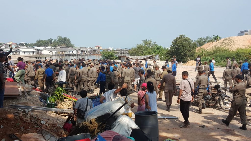 Pengusuran itu dilakukan oleh ratusan tim terpaduk Kota Batam, yakni Satpol PP, Ditpam BP Batam, TNI, Polri dan Dishub Kotam. (Zel)