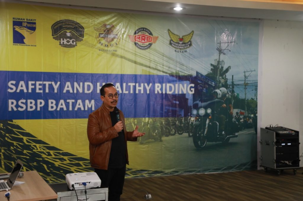 PROBATAM.CO, Batam – Rumah Sakit BP Batam menggelar Safety and Healthy Riding sekaligus Sosialisasi penyakit jantung di Aula RSBP, Lt.4, Sekupang, Sabtu (9/11). Kegiatan ini diikuti oleh 30 riders dari empat komunitas di antaranya Harley Owner Group (HOG) dari Sumatera Motor Batam Chapter, HDCI (Club Harley Davidson Indonesia – Kepri, Batam), MBC Batam, MRC Batam.