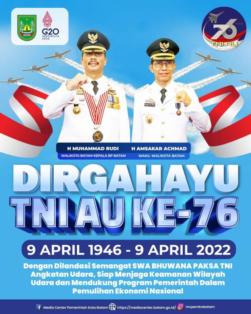 PROBATAM.CO, Batam – Hari ini TNI Angkatan Udara (AU) memperingati hari ulang tahun ( HUT ) ke-76. Sabtu 9 April merupakan hari istimewa bagi TNI AU.