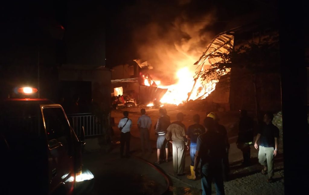 Sebuah ruko yang ditempati sebagai bengkel sparepart mobil beserta seluruh isinya habis dilahap api.
