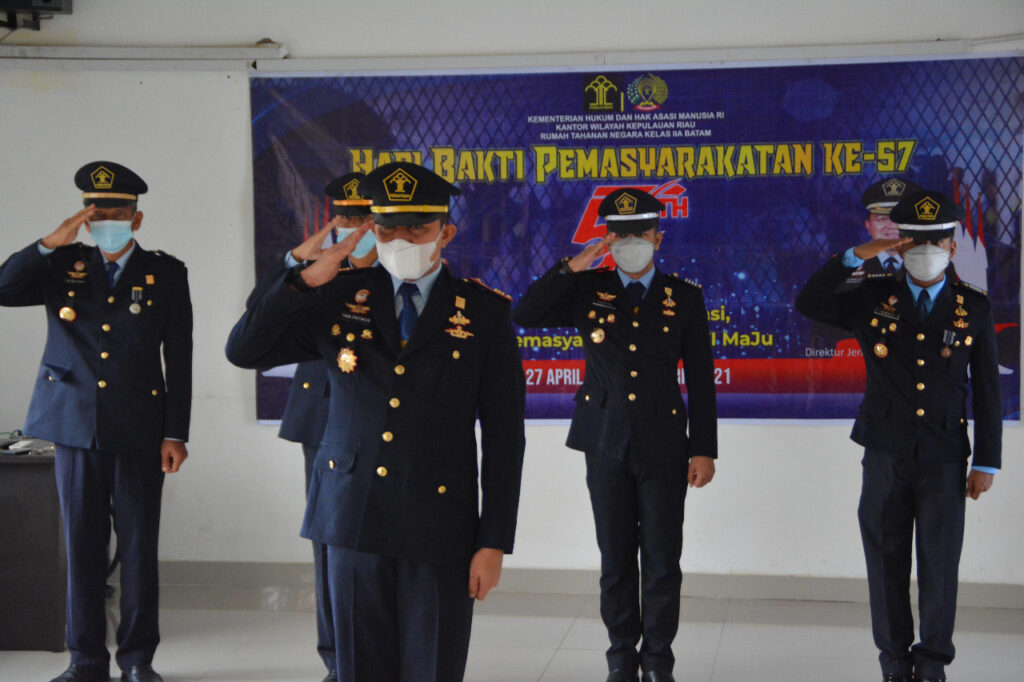 PROBATAM.CO, Batam – Kepala Rumah Tahanan Negara Kelas IIA Batam, Yan Patmos bersama Pejabat Struktural mengikuti Upacara Peringatan Hari Bakti Pemasyarakatan ke-57 Tahun 2021, Selasa (27/4/2021).