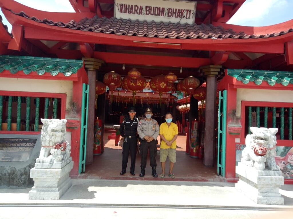 PROBATAM.CO, Batam- Personil Binmas Polsek Lubuk Baja, Polresta Barelang menyambangi rumah ibadah Vihara Budi Bakti, Blok 5, Kelurahan Lubuk Baja, Kecamatan Lubuk Baja, Kota Batam, Selasa (21/7/2020).