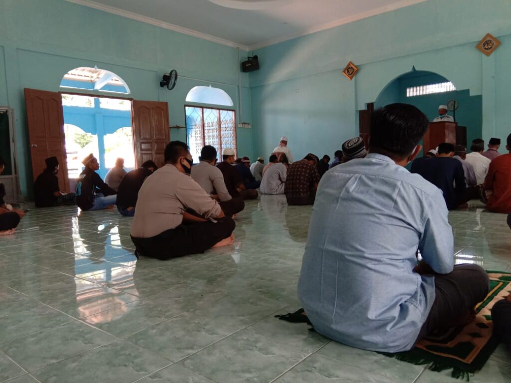 PROBATAM.CO, Batam – Personil Polsek Galang melaksanakan Sholat Jumat dan Sholat Jumat berjamaah dalam adaptasi kehidupan baru di Mesjid Nurul Jihad, Kelurahan Sembulang, Kecamatan Galang, Kota Batam, Provinsi Kepri, Jumat (7/8/2020) siang.