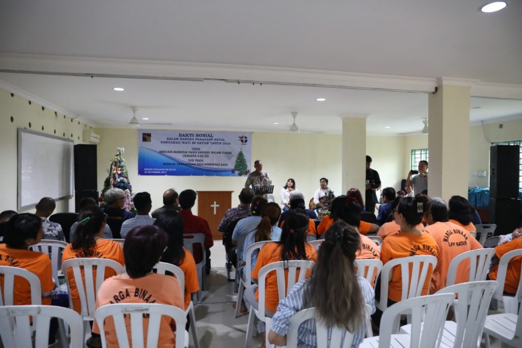 PROBATAM.CO, Batam – Menyambut Natal tahun 2019, Badan Pengusahahaan (BP) Batam melalui Persekutuan Doa Oikumene (PDO) berkunjung ke Lembaga Pemasyarakatan Perempuan (LPP) Klas IIB dan Lembaga Pembinaan Khusus Anak Batam pada Sabtu (23/11).