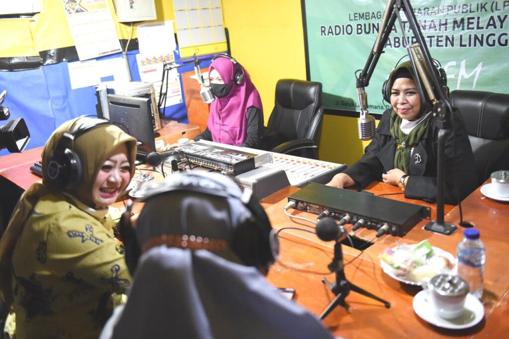 Dewi menyapa warga ditemani Ketua PKK Lingga, Maratusoliha M Nizar. Mereka berdua dipandu Neva yang menjadi penyiar radio itu. Dewi pun menyapa lewat sebait pantun.
