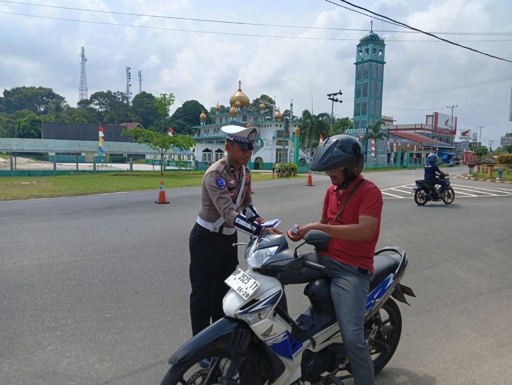 PROBATAM.CO, Lingga – Sebagai bentuk komitmen dalam meningkatkan kesadaran masyarakat terhadap pentingnya tertib berlalu lintas serta menekan angka pelanggaran dan kecelakaan di wilayah Kabupaten Lingga, Satuan Lalu Lintas (Satlantas) Polres Lingga menggelar kegiatan sosialisasi melalui pembagian brosur keselamatan kepada pengendara roda dua (R2) dan roda empat (R4), di beberapa titik pusat keramaian di Dabo Singkep, Kabupaten Lingga. Jumat (3/10/2025),