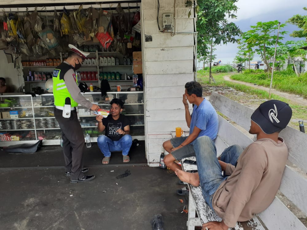 Satltantas Polres Natuna Sosialisasi Penerapan New Normal Disertai Pembagian Masker dan Brosur Himbauan