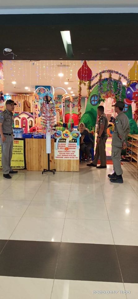 Anggota Satpol PP Pemko Batam memantau dan mengingatkan orang tua yang anak-anaknya selama diliburkan main ke tempat-tempat umum, seperti mall dan warnet serta lainnya. (photo:mcb)