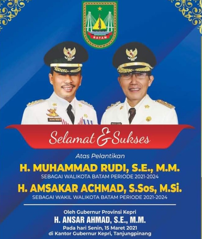 Sebagaimana diketahui, pemenang Pilkada Batam Rudi- Amsakar dilantik Gubernur Kepri Ansar Ahmad sebagai Wali Kota dan Wakil Wali Kota Batam Senin (15/3/2021).