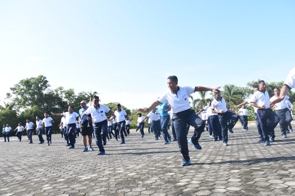 PROBATAM.CO, Tanjungpinang – Segenap Prajurit dan PNS Pangkalan Utama TNI Angkatan Laut (Lantamal) IV, melaksanakan olah raga senam Ling Tien Kung atau senam injit-injit, bertempat di Lapangan Apel Markas Komando (Mako) Lantamal IV Jl.Yos Sudarso No.1 Batu Hitam Tanjungpinang Kepulauan Riau, Jumat (25/10).