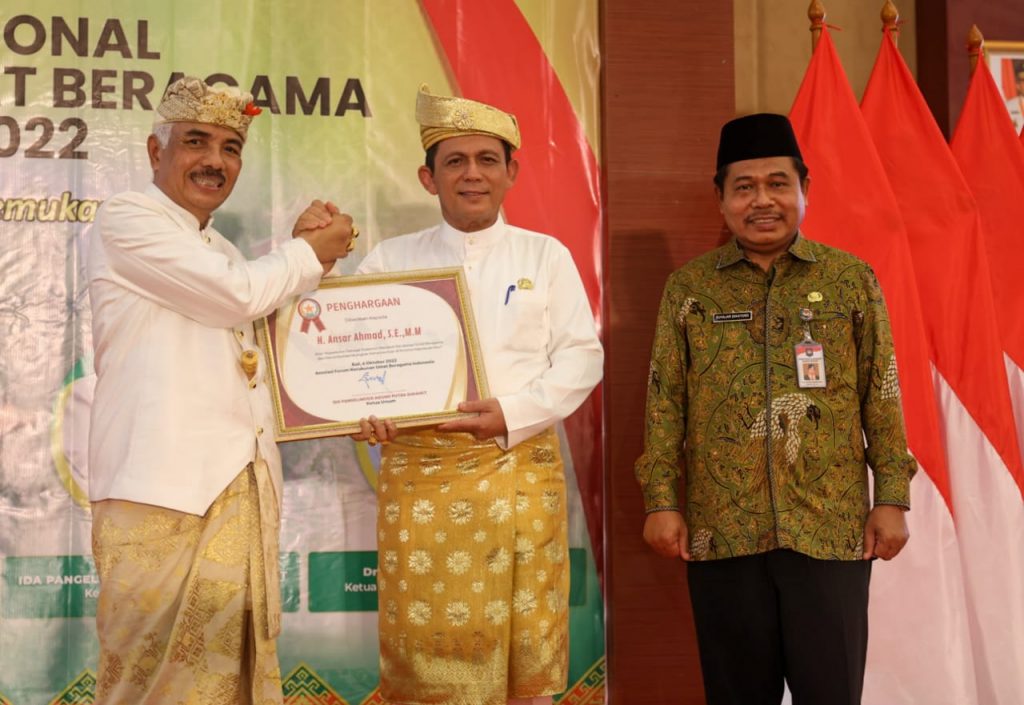 Pada pembukaan Konferensi Nasional FKUB kali ini, Gubernur Ansar mendapatkan penghargaan dari FKUB se-Indonesia sebagai Gubernur Peduli Kerukunan. Gubernur Ansar dipandang pantas mendapatkan penghargaan tersebut karena selama ini Provinsi Kepulauan Riau tidak pernah diterpa oleh permasalahan intoleransi dan perpecahan diantara umat beragama. (*/hel)