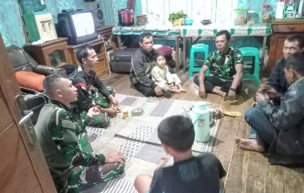 Ditemani penganan dan kopi panas, Sertu Hendri dan Serda Asep ngobrol santai bareng warga, sesekali diselingi tawa ringan, suasana hari itu lebih terlihat seperti keluarga, sangat efektif untuk menyerap aspirasi sekaligus memperkuat kemanunggalan TNI dengan rakyat.