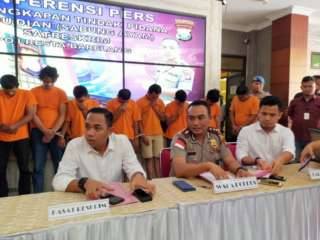 Orang nomor dua di Polresta Barelang saat memberikan keterangan didampingi Kasat Reskrim Polresta Barelang Kompol Andri Kurniawan dan Wakasat Reskrim Polresta Barelang AKP Ricky Firmansyah mengatakan judi sabung ayam tersebut sudah beroperasi selama satu tahun.